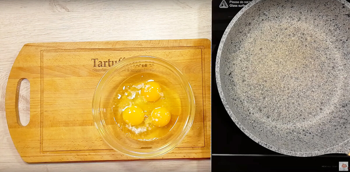 Начинается процесс с того, что яйца взбиваются с добавлением соли и заливаются на предварительно разогретую и смазанную сковороду, чтобы получить идеальный яичный блинчик. Пока он жарится до золотистой корочки, куриные бедра подготавливаются – их нужно надрезать вдоль, разворачивая как книгу, и аккуратно отбить до нужной толщины.
