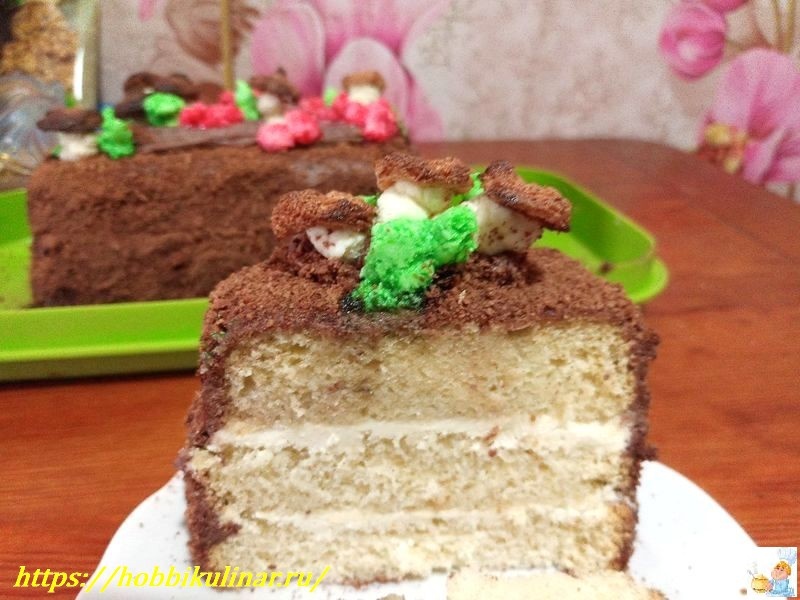 Торт предлагает множество возможностей для оформления, в том числе украшение с грибочками и лесными полянками, что и вдохновило на его необычное название.