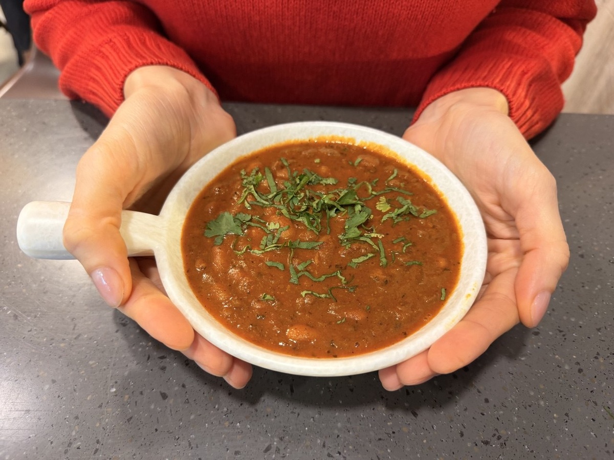 Блюдо подали очень быстро, и спустя семь минут на столе уже стояла горячая порция. С первых же укусов открывается яркость вкусов: томаты, карри, тмин и множество пряностей делают раджму идеальным выбором для холодного времени года. Для любителей фасоли это будет настоящая находка, напоминающая известное грузинское лобио.