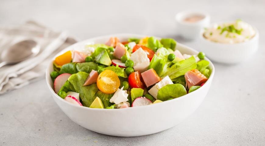 Этот салат — настоящее открытие для весеннего стола! Он обладает гармоничным сочетанием легкости и сытности, а его приготовление не потребует много времени. Всего 15 минут — и на вашем столе появляется удивительное блюдо, которое можно дополнить свежим зеленым горошком. Все ингредиенты легко найти в любом супермаркете.