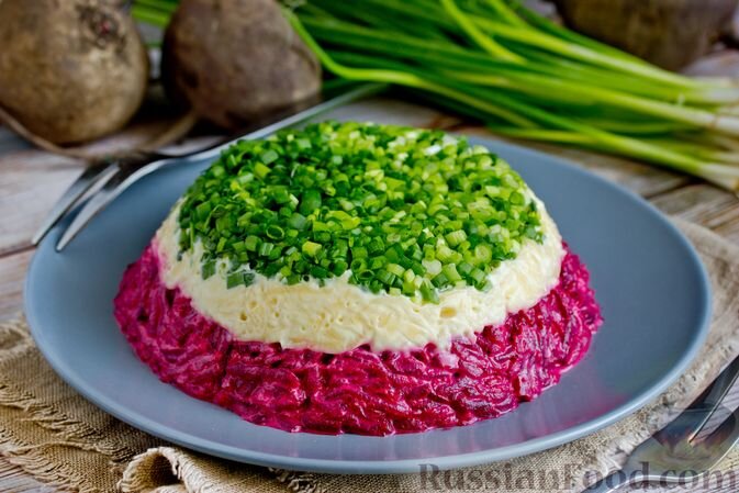 Для тех, кто ищет что-то необычное: слоёный салат из свёклы и сыра с чесноком выглядит очень нарядно и украсит любой праздничный стол.