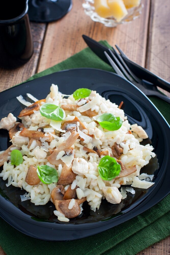 Нежный ризотто с грибами и курицей: изысканное угощение для дома