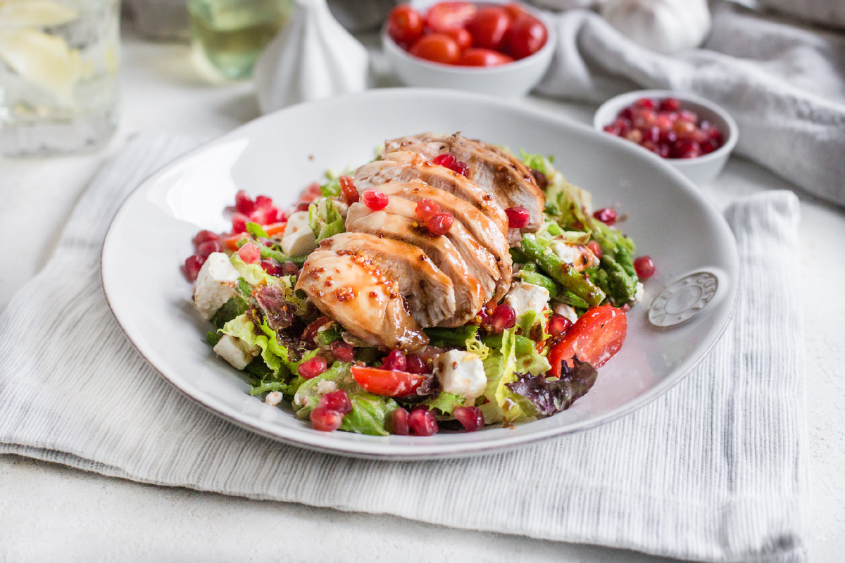 Салат Ле Руж с индейкой, брынзой и сочными зернами граната — это настоящая находка для любителей ярких вкусов. Главным акцентом этого блюда является наршараб — гранатовый соус с восточным колоритом, который пришел к нам из Азербайджана. Чарующее название «наршараб» образовано от слов «нар» (гранат) и «шараб» (вино), и действительно, его густая текстура напоминает насыщенное вино. Для приготовления соуса потребуется просто выпарить гранатовый сок и добавить специи: базилик, корицу, кориандр, перец, сахар и соль.