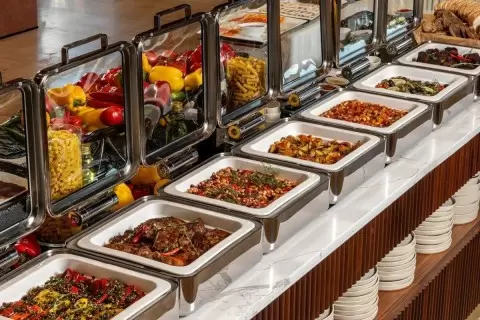 Согласно стандартам ХАССП, все остатки, покинувшие кухню, должны быть утилизированы. Это значит, что даже если еда не была съедена, вернуть её назад уже невозможно. В зале предлагается разнообразие блюд в малых количествах, и в случае необходимости, повара могут дополнять ассортимент из запасов, находящихся на кухне. Это позволяет оптимизировать остатки и перенаправлять еду, к примеру, на кормление работников заведения.