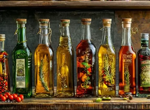 - Оливковое масло Extra Virgin: Настоящий король заправок, придающий салатам богатый вкус, но не подходит для жарки.