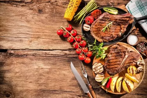 Для приготовления стоит выбрать специальную сковороду-гриль и идеальными ингредиентами будут свинина или говядина. Лучше всего остановиться на средней прожарке, чтобы получить сочное, мягкое и не пересушенное мясо.