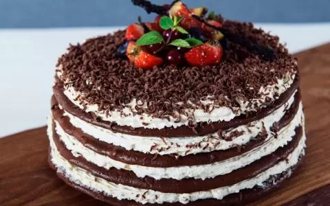 Теперь перейдем к созданию самого торта. Тесто делится на три равные части, каждая из которых раскатывается в плоский корж и выпекается. Готовые коржи обильно смазываются кремом, причем не забывайте оставлять часть крема для верхнего слоя. Коржи аккуратно складываются друг на друга, а верхний покрывается оставшимся кремом и щедро посыпается тертым шоколадом.