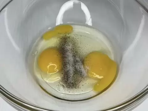 Готовить такие оладьи проще простого. Начать стоит с взбивания яиц с небольшим количеством соли и перца. Затем в полученную массу вливается кефир и всё тщательно перемешивается до однородной консистенции. Далее на подходе мука: если она самоподнимающаяся, можно обойтись без разрыхлителя. В противном случае в обычную муку нужно добавить разрыхлитель.