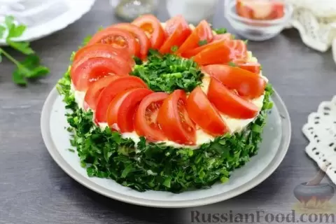 - Слоёный салат с курицей и грибами: Идеальное сочетание копчёной курицы, обжаренных шампиньонов и нежного плавленого сыра делает его настоящим украшением стола. Добавьте помидоры и заправьте всё майонезом — и вы получите эффектный и сытный салат.