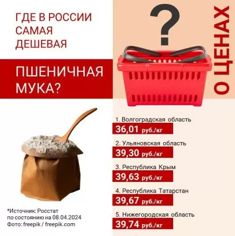 Одним из лидеров по доступным ценам на пшеничную муку оказывается Республика Крым, находящаяся в Южном федеральном округе. Здесь жители могут заплатить меньше, чем в большинстве других регионов России. Волгоградская область, также относящаяся к ЮФО, отличается еще более выгодными предложениями — именно здесь за муку можно заплатить минимальные суммы.