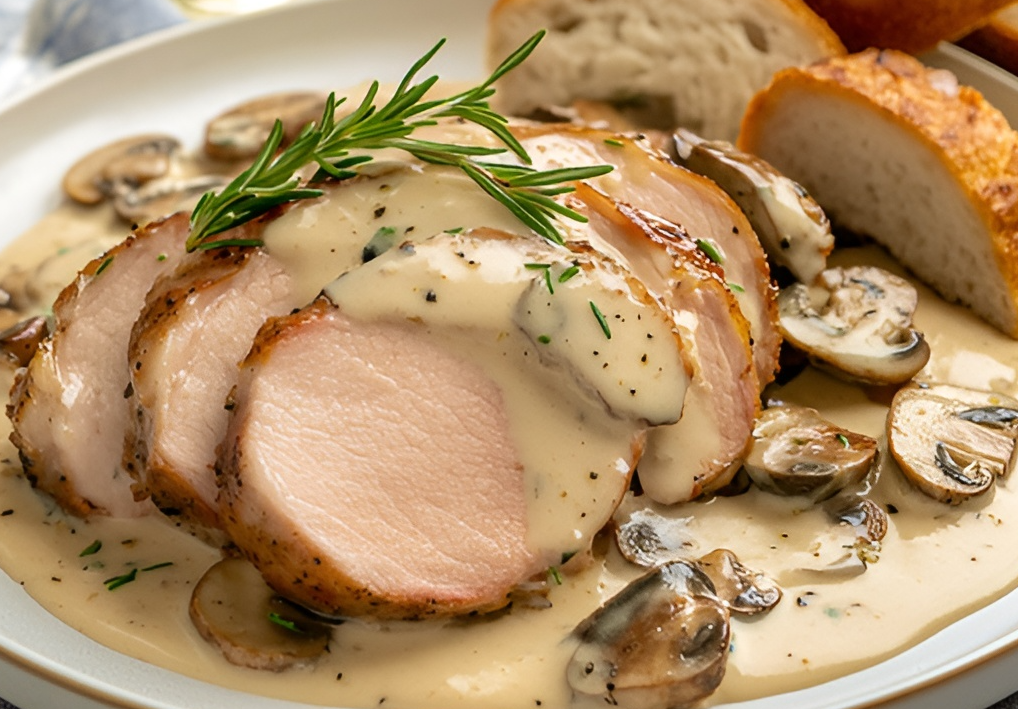 Это не только рецепт, но и маленький ритуал: быстро обжарить ломти свиной вырезки, затем соединить их с грибами и густым соусом, чтобы каждый кусочек стал мягким и насыщенным.
