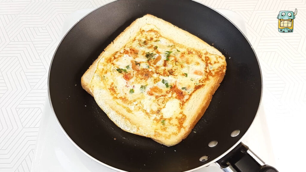 Затем накрыть сэндвич еще одним кусочком хлеба и обжаривать с одной стороны до золотистой корочки, аккуратно прижимая лопаткой. Важно, чтобы огонь был средним, чтобы начинка успела пропечься. Перевернуть и обжарить с другой стороны.