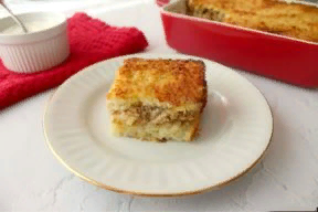 Когда бабка готова, нарезать ее на порционные куски и подать к столу горячей со сметаной. Приятного аппетита!