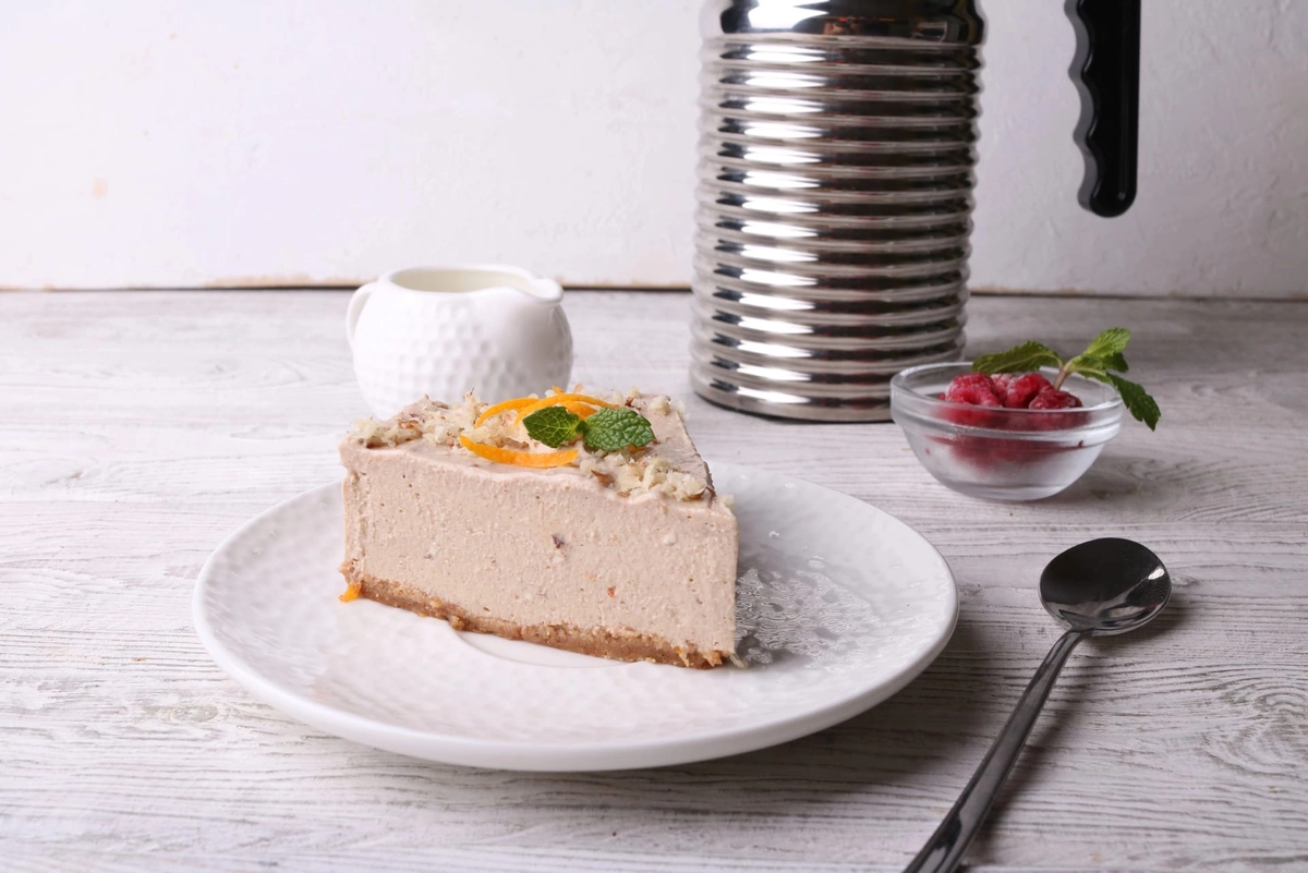 Этот уникальный десерт сочетает в себе нежность чизкейка и легкость, которыми так приятно наслаждаться в теплые дни. В его основе — свежевыжатый апельсиновый сок, а вместо традиционного творожного сыра используются творог и густой 2% йогурт. Безумно вкусно и совершенно без выпечки!