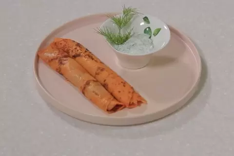 Томатные блины можно подавать с соусом или с разными начинками. Попробуйте добавить творог, тушеную капусту с грибами или ваши любимые ингредиенты. Этот простой, но оригинальный подход к классическому блюду обязательно разнообразит любое ваше застолье!