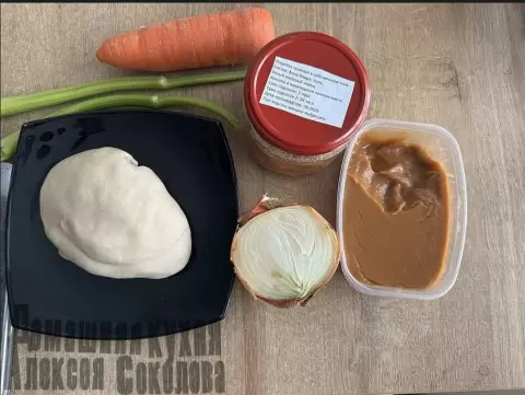 Пока рагу томится, настало время заняться лапшой. Для приготовления теста на хинкали необходимо использовать 500 граммов муки, 10 граммов соли и 160-190 миллилитров воды. Смешайте ингредиенты в планетарном миксере, формируйте комок теста и оставьте его на пару часов, чтобы он стал эластичным.