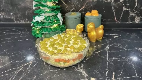 Готовый салат станет ярким дополнением к вашему праздничному столу, и его непременно оценят ваши близкие и друзья. Приятного аппетита!