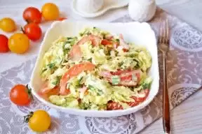 - Помидоры в дело! Нарежьте их на крупные ломтики и соедините с капустой. Их сладковатый сок создаст гармонию с хрустящей текстурой листьев.