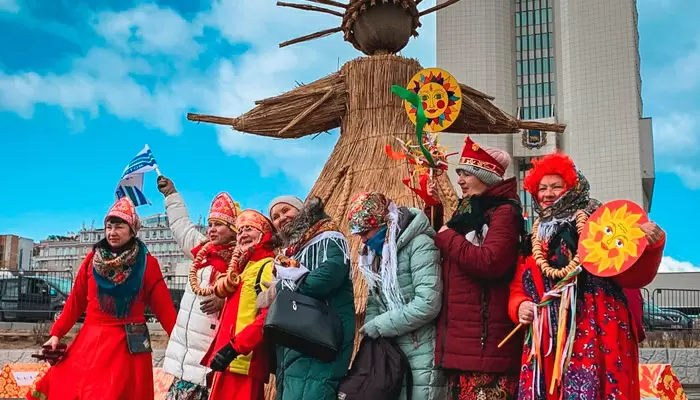 - Понедельник: Встреча Масленицы, установка снежных крепостей и начало блиночного сезона.