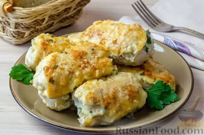 - Куриные рулетики с плавленым сыром - невероятно нежные рулетики, наполненные плавленым сыром и зеленью. Они обжариваются в золотистой панировке, что придаёт блюду аппетитный вид.