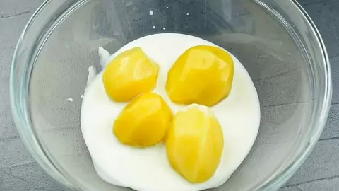 Для теста рекомендуется использовать кефир комнатной температуры с жирностью не менее 2,5%. Также стоит заранее достать яйца из холодильника, чтобы все компоненты смешивались легче и быстрее. Основным ингредиентом здесь выступает картофель — его следует отварить в подсоленной воде до полной готовности.