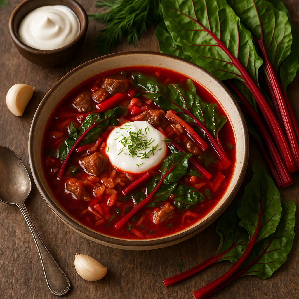 Приготовление этого блюда займет немного времени и сил. Ингредиенты для борща с мангольдом: