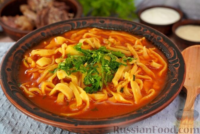- Суп с говядиной и домашней лапшой: Насыщенный бульон из говяжьей голяшки с картофелем, луком и томатной зажаркой, дополненный нежной лапшой, станет настоящим украшением вашего стола.