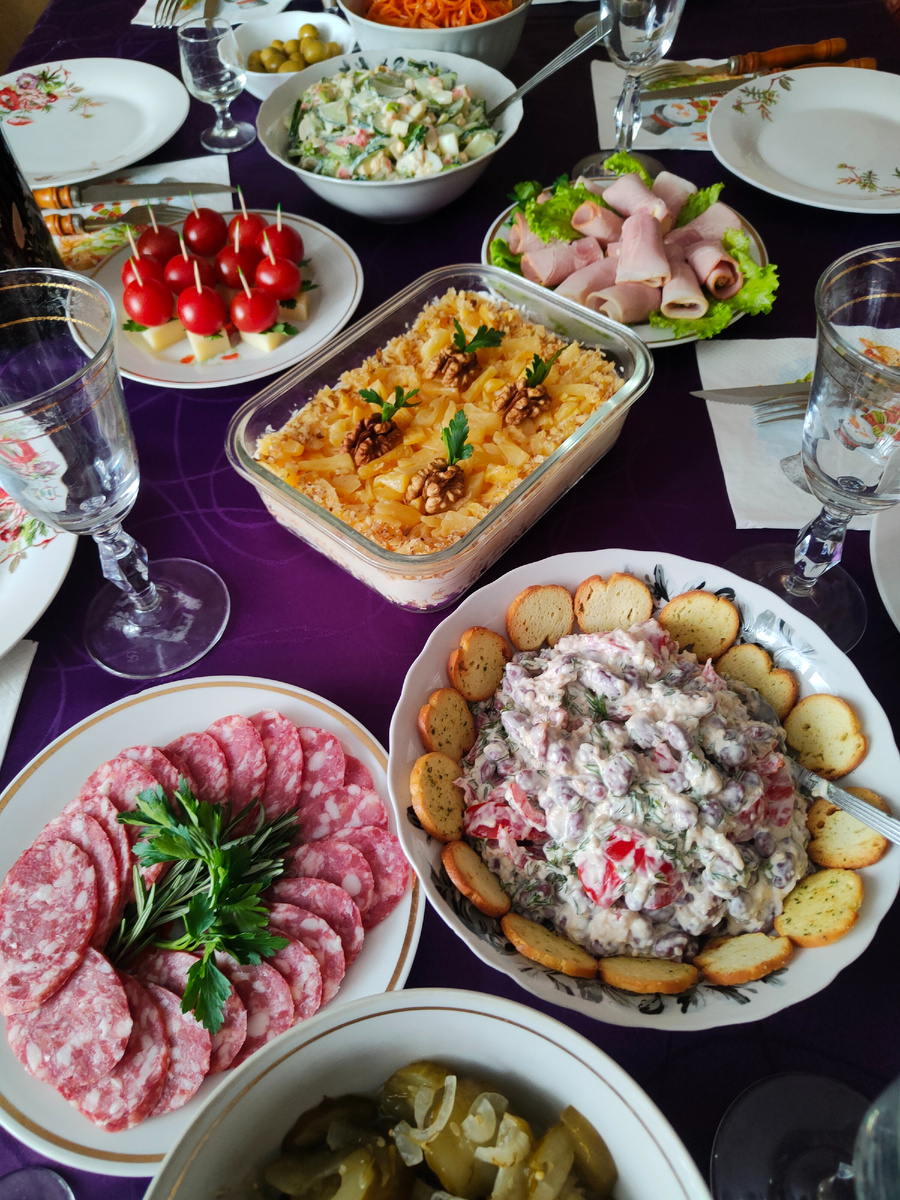 Праздник не обошелся без множества разнообразных салатов: